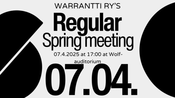 Tervetuloa Warrantti ry:n sääntömääräiseen kevätkokoukseen maanantaina 7.4.2025 klo 17:00 Kokous järjestetään Vaasan yliopistolla Wolf-salissa. Kokouksessa voi äänestää vain paikan päällä.